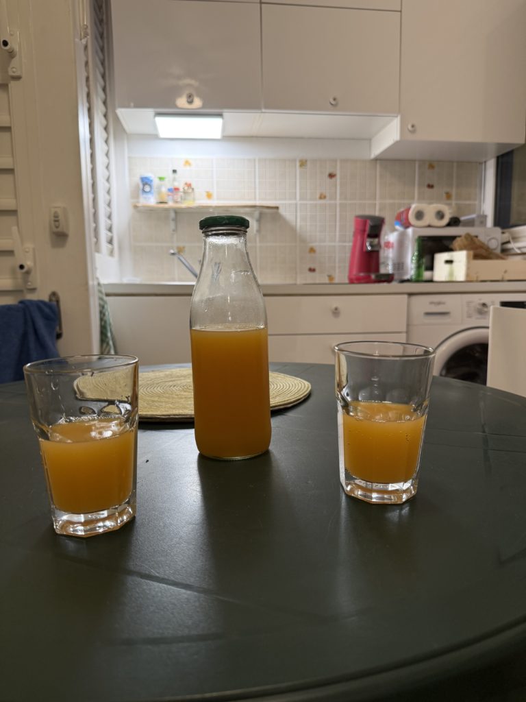 Enfin on arrive à l’appartement. Laurent, le responsable, nous attend et nous explique le fonctionnement et répond à toutes nos questions, voire plus. Mais je n’avais qu’une envie : enlever mes chaussettes de contention et boire un grand verre d’eau fraîche, ce que j’ai fait dès qu’il a refermé la porte derrière lui.
