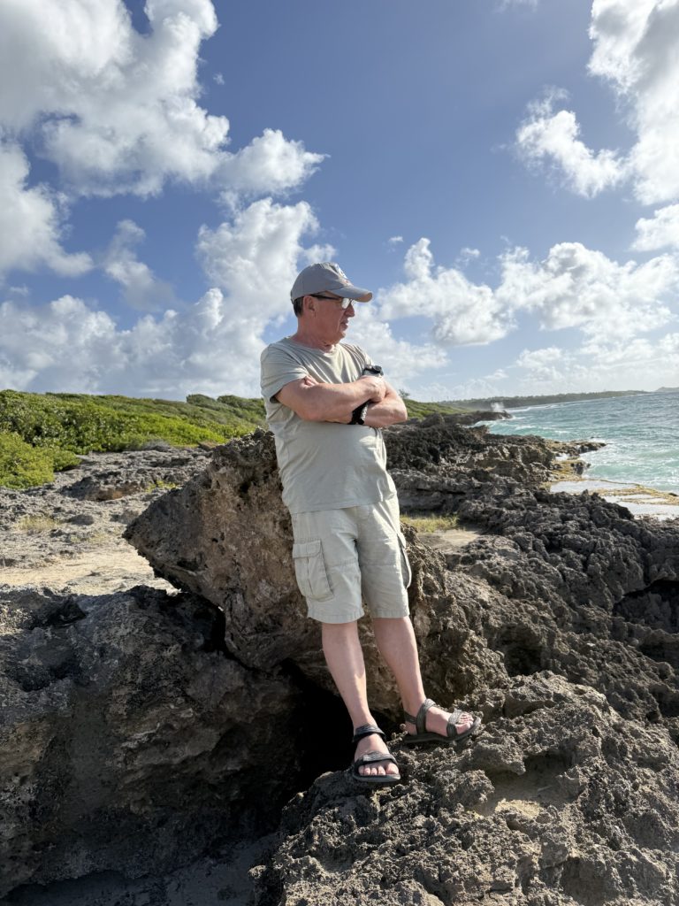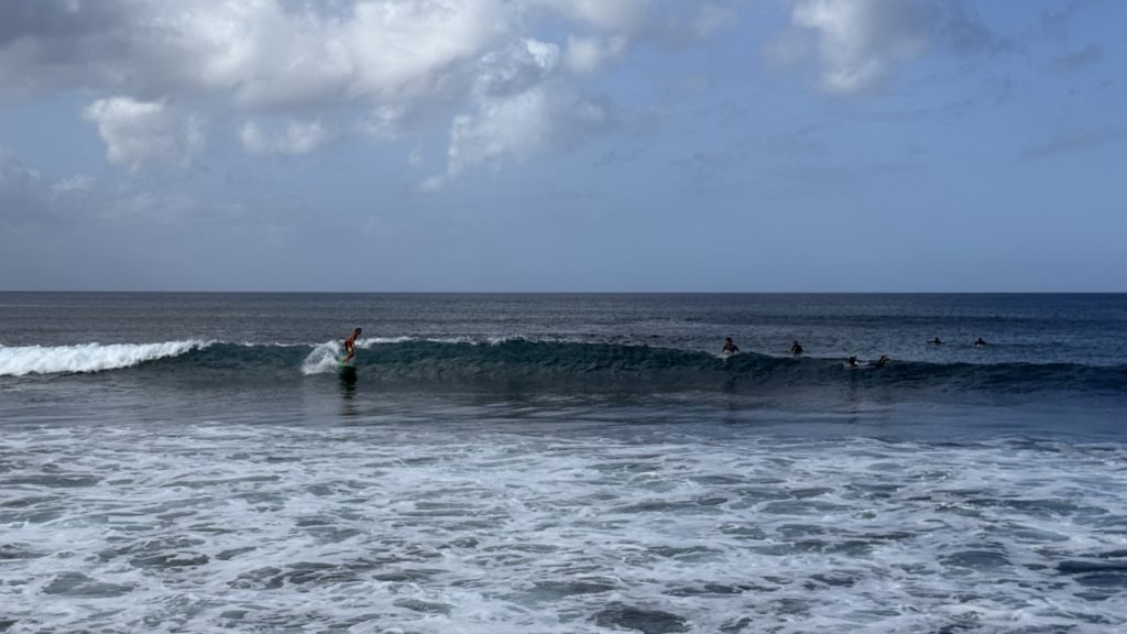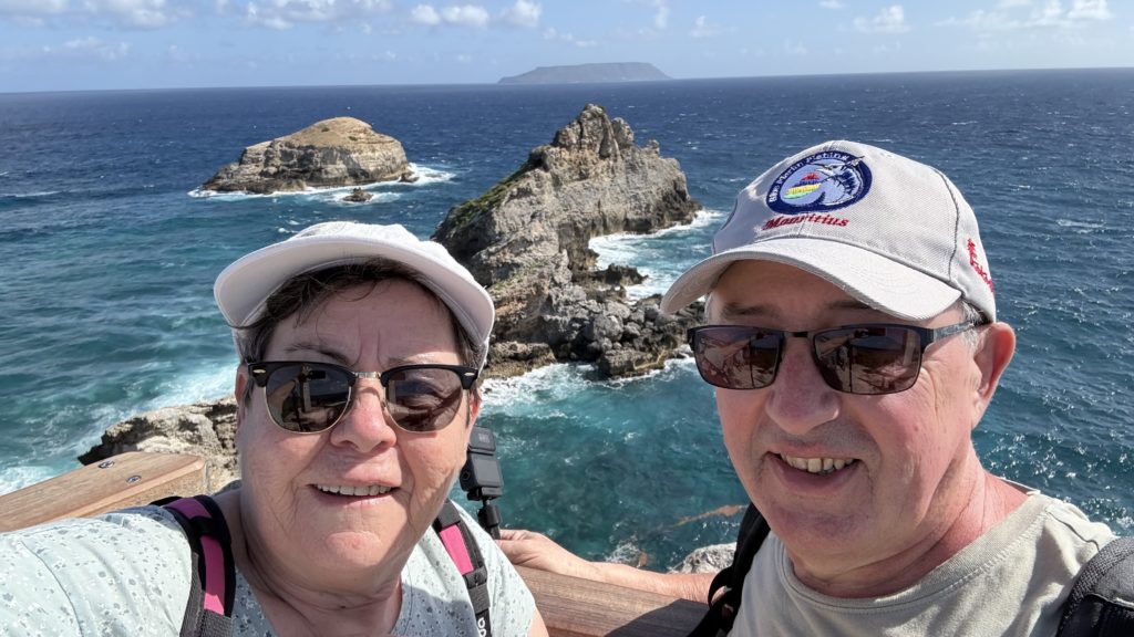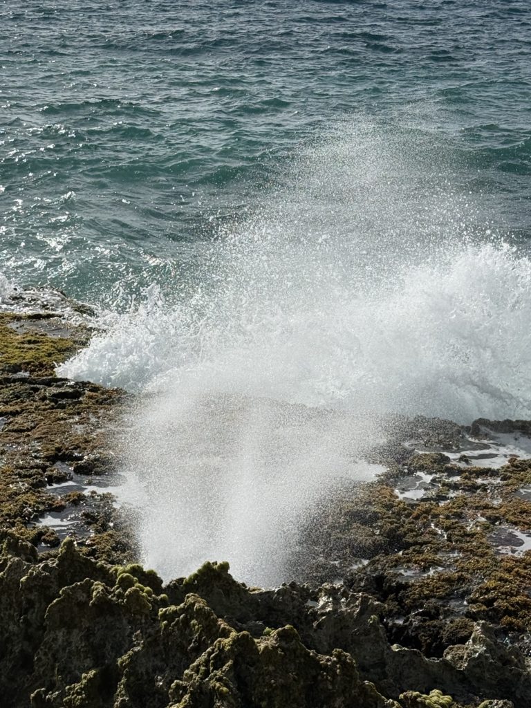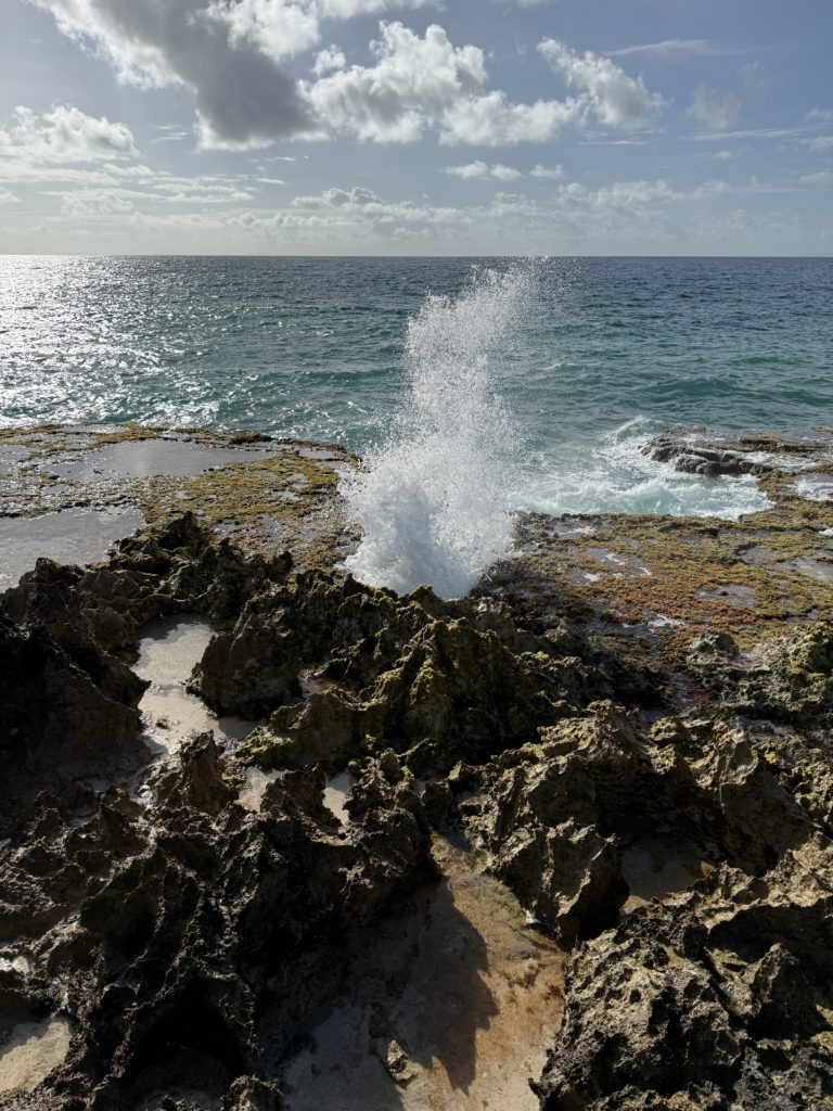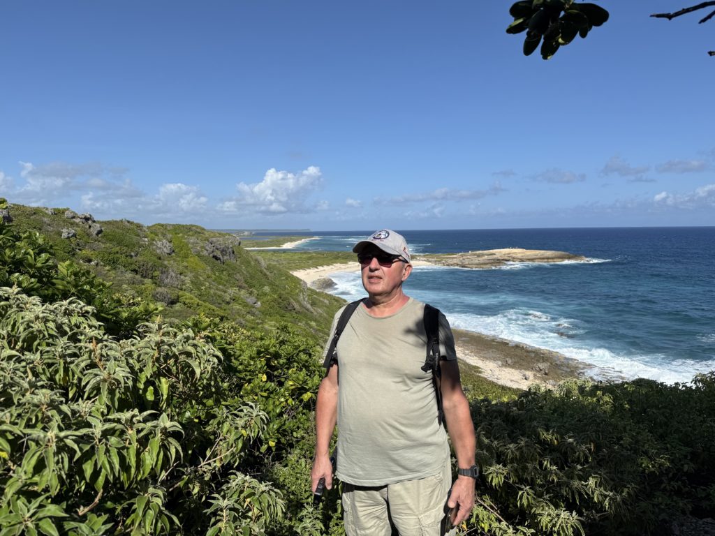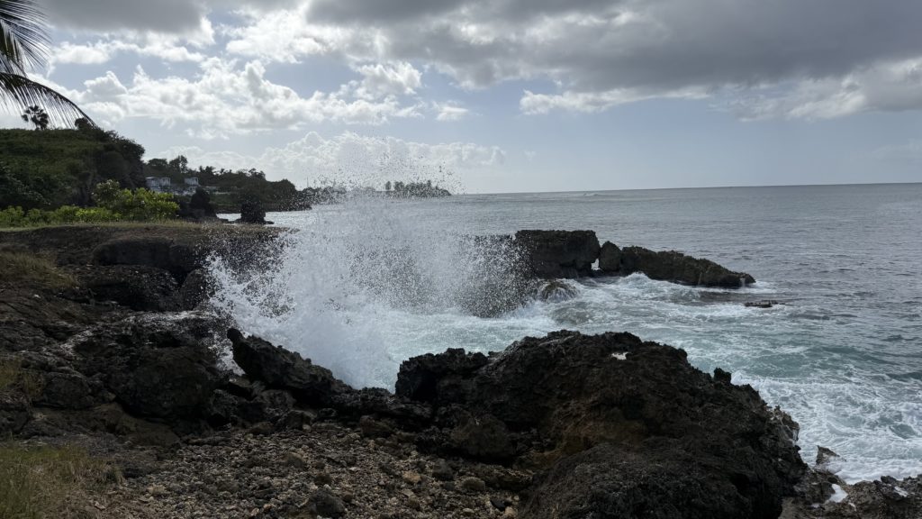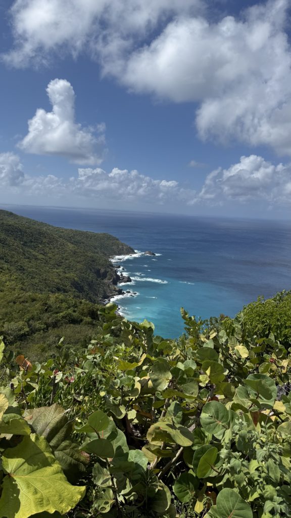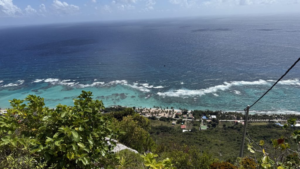 Arrivés à la croix : une étendue d’eau, l’île de la Désirade en face, les vagues sont monstrueuses… mais qu’est-ce que c’est beau 😍.