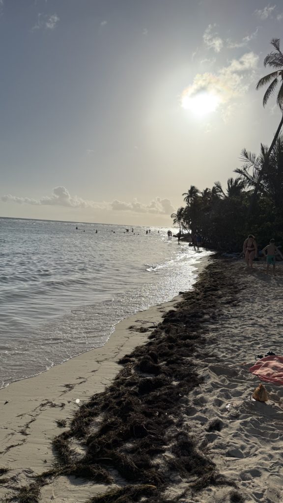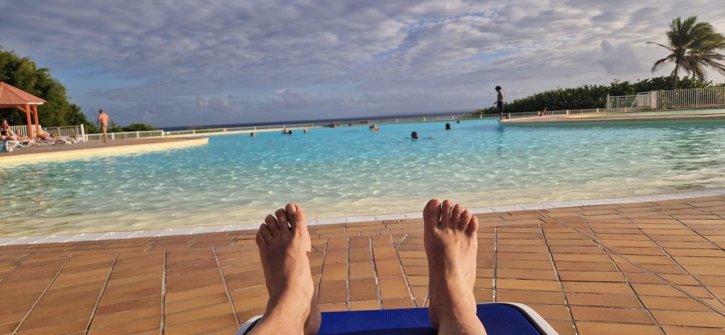 On a prévu d’aller à Sainte-Anne, à la plage du Club Med qui s’appelle la plage de la Caravelle.