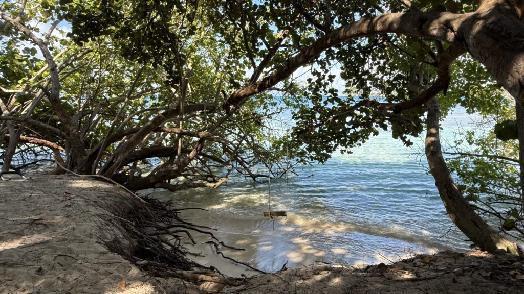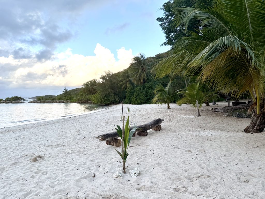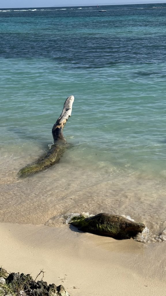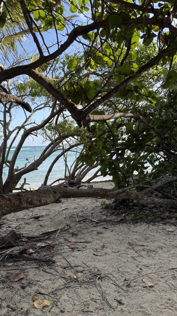 Arrivés sur l’îlot, on fait le tour pour trouver une bonne place à l’ombre, car il n’est que 9h30 mais il fait déjà très chaud 🥵.