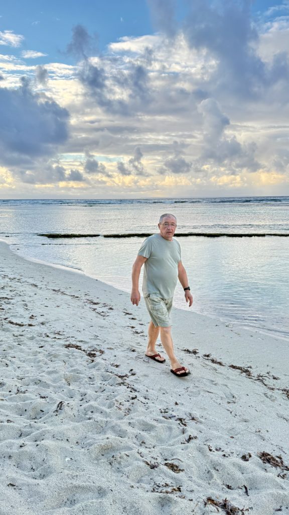 Il est 16 h 30, il est temps de partir de la plage, sinon les yens-yens vont sortir du sable et nous piquer. Le yen-yen est un petit moucheron qui pique au crépuscule et à la nuit tombante. C’est pire que le moustique, qui, entre parenthèses, je n’ai pas encore vu.