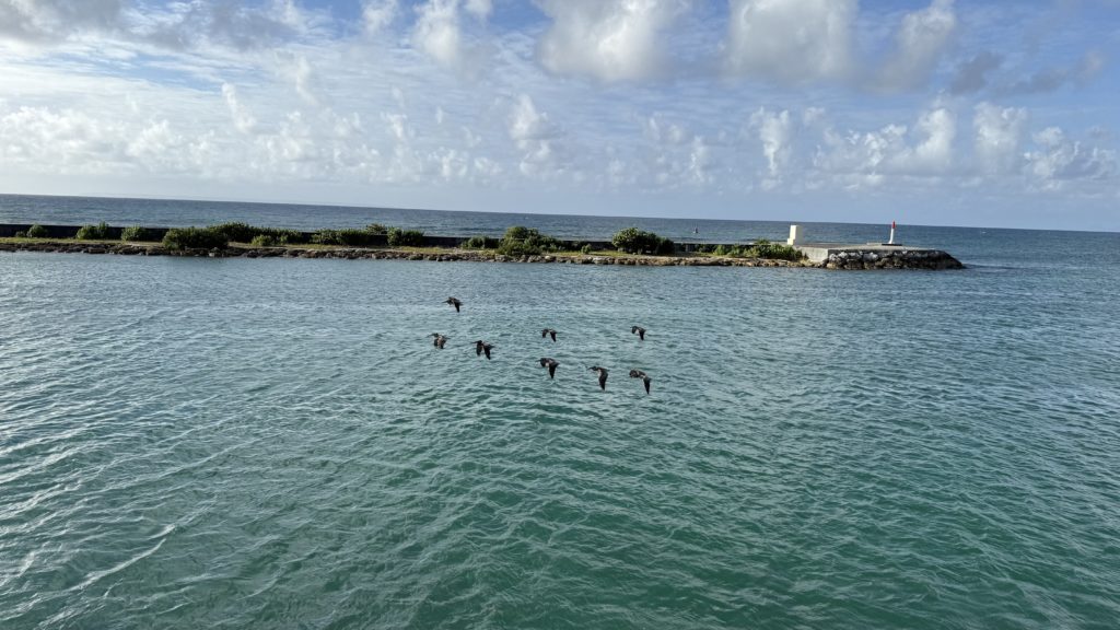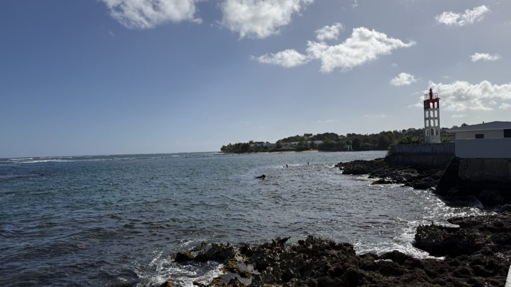 Aujourd’hui, c’est petit déjeuner à la maison. On va visiter le bout de Grande-Terre, à la Pointe du Château, même qu’il n’y a pas de château 😄.