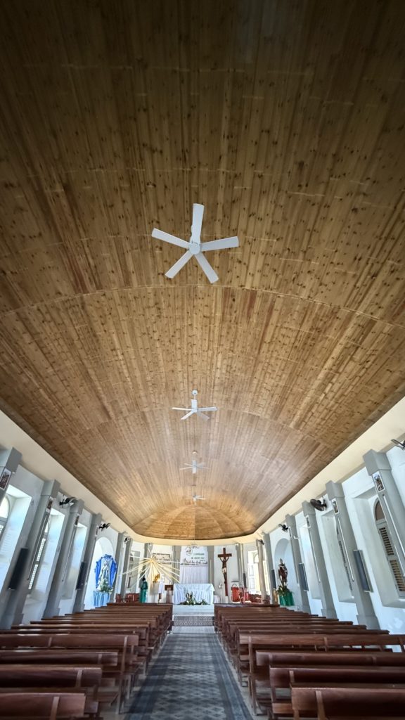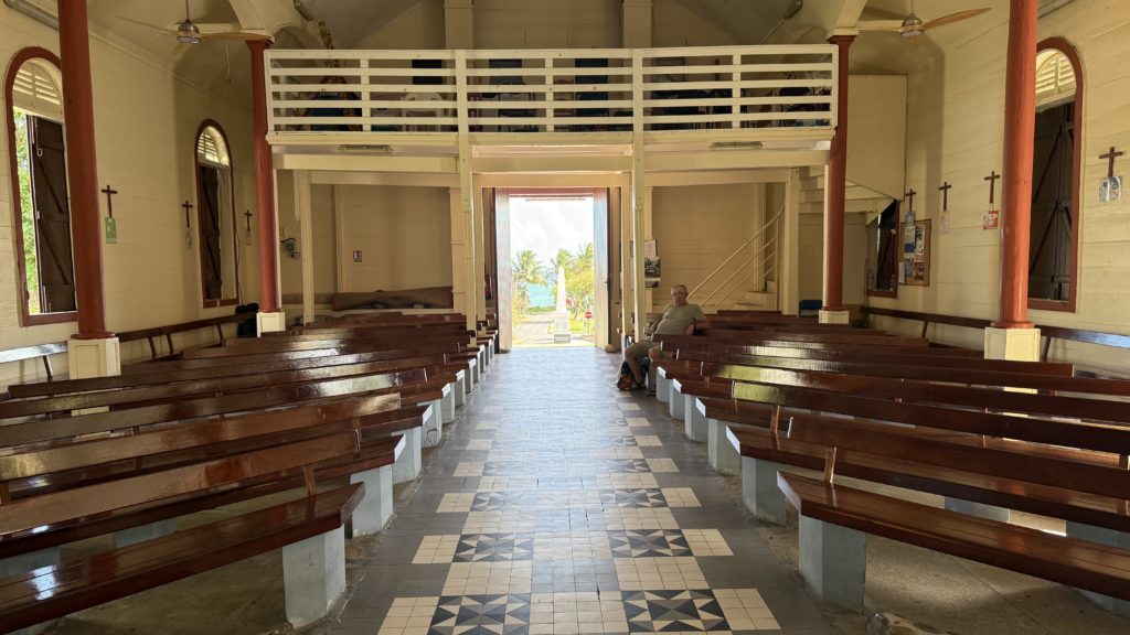 Après le bon repas, on laisse Lilou et on va visiter l’église, construite en forme de bateau en l’honneur des pêcheurs de l’île.