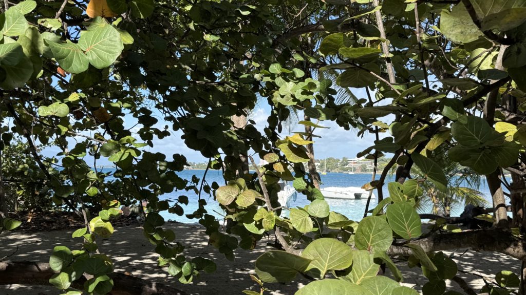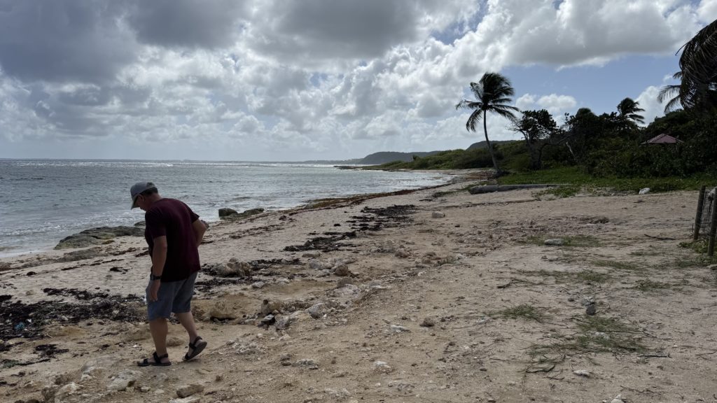 Samedi, nous allons faire une virée en bateau sur l’île de la Désirade et on aimerait aller prospecter pour savoir où on aura rendez-vous. C’est à 8 minutes du camp.