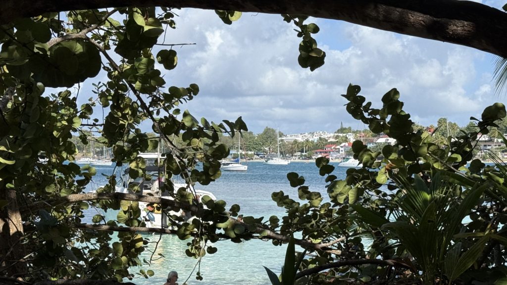 Aujourd’hui, on prend le bateau pour visiter l’île de La Désirade. Le temps, pour l’instant, n’est pas au beau fixe et c’est certainement mieux : il fera moins chaud. Par contre, il va falloir beaucoup se crémer, le soleil derrière les nuages, c’est pire.